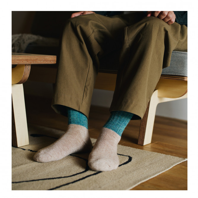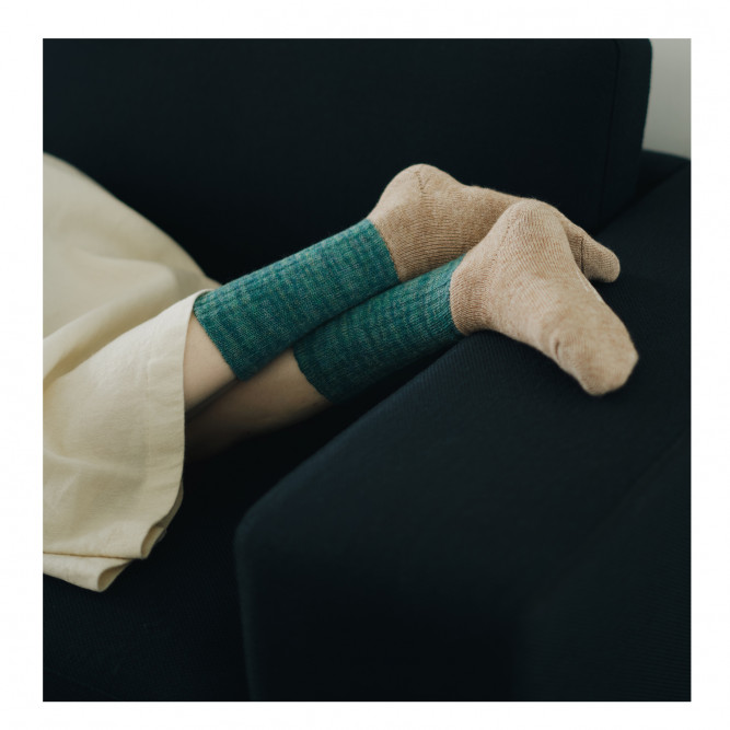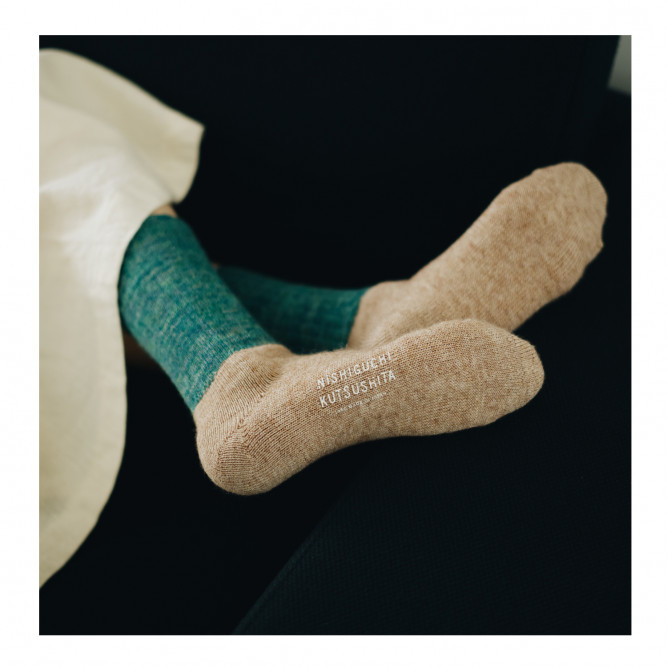 Japonská značka Nishiguchi Kutsushita vyrábí pletené ponožky už od roku 1950. Při výrobě si pečlivě vybírá ty nejkvalitnější přírodní materiály a užívá tradiční metody, aby vytvořila jednoduché, ale krásné pletené produkty.